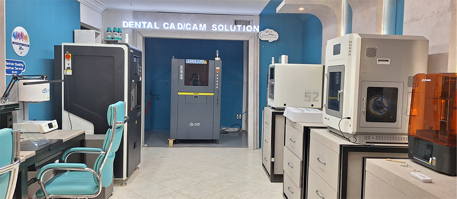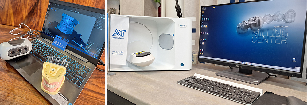 تجهیزات خروجی مانند پرینتر سهبعدی دندانی رزینی یا دستگاه CNC میلینگ برای تولید نهایی